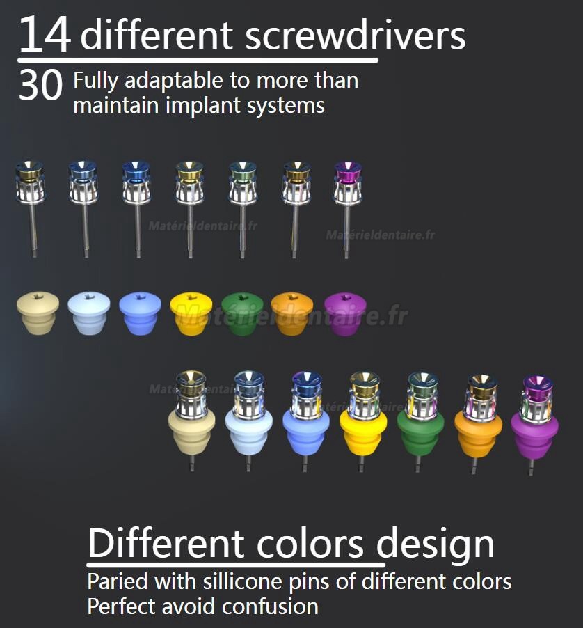 5. 14 tournevis différents, s'adaptent parfaitement à plus de 30 systèmes d'implants différents.