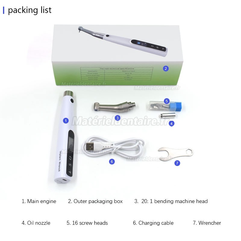 Accueil - Endodontie et Implantologie - Instruments et matériel implantologie - Clé pour implants dentaires> Clé dynamométrique électrique universelle pour implants dentaires 10-50N.cm avce 16 pièces têtes de vis