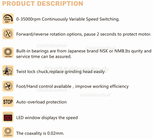 1. Vitesse infinitie variable de 0 à 35000 tours/min