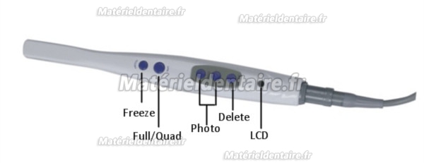 5.5 boutons de contrôle sur la pièce à main : freeze, save, previous image, next image, delete