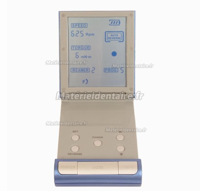 Vitesse de rotation 125-625 tr/min, torque de 6-40mN.M, 3 modes de rotation, 9 types des alésoirs endodontiques disponibles. Système d'opération de multi-fréquence. Design ergonomique, apprence élégente, facile utilisation.